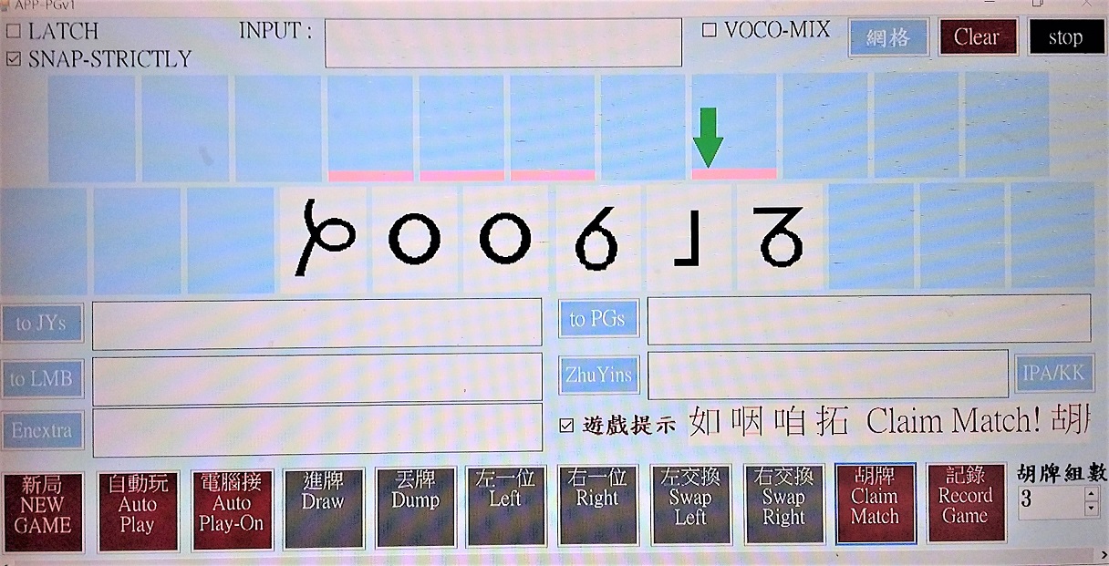 比如下圖是一個三組双拼字料胡牌的 例子: