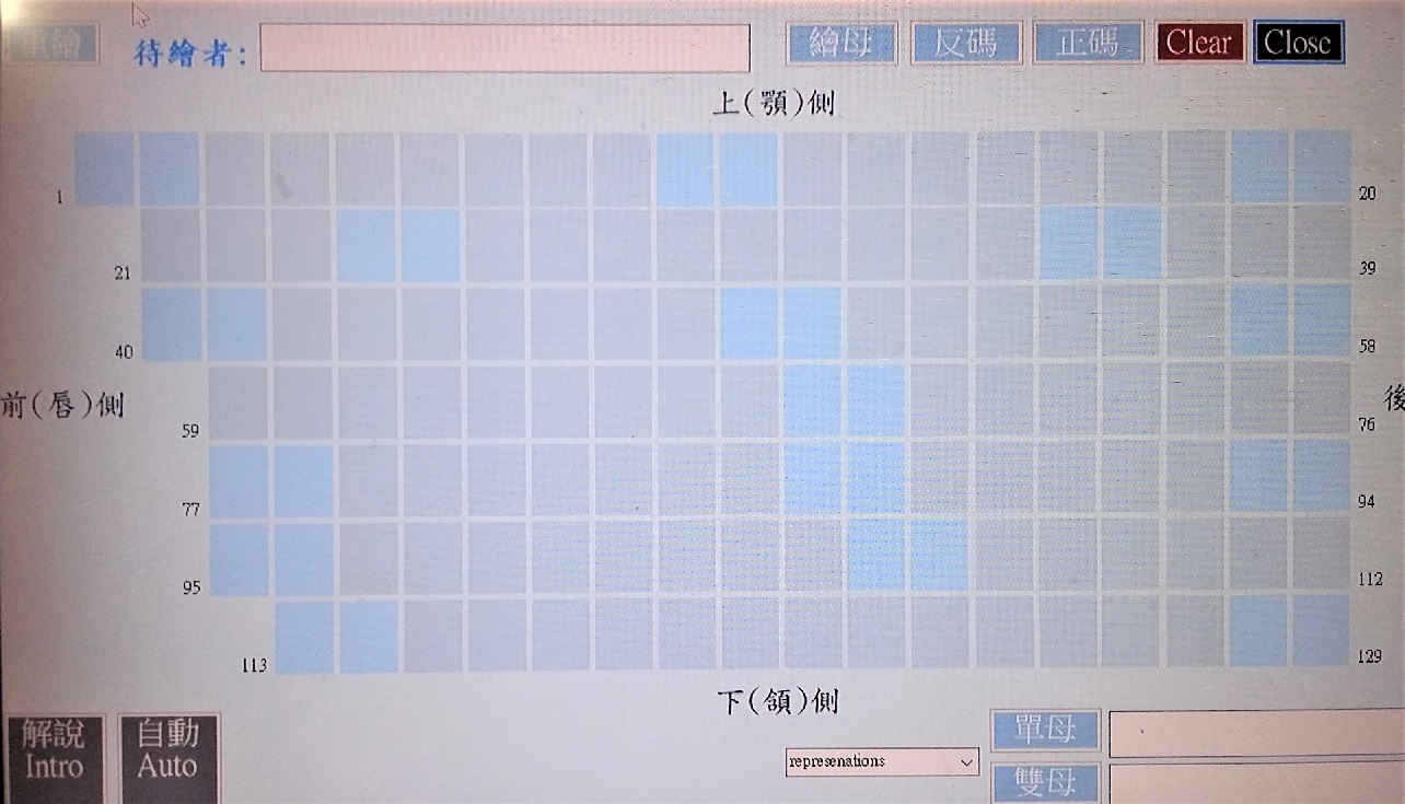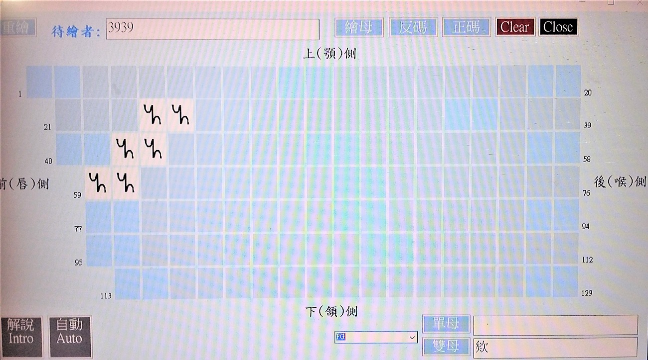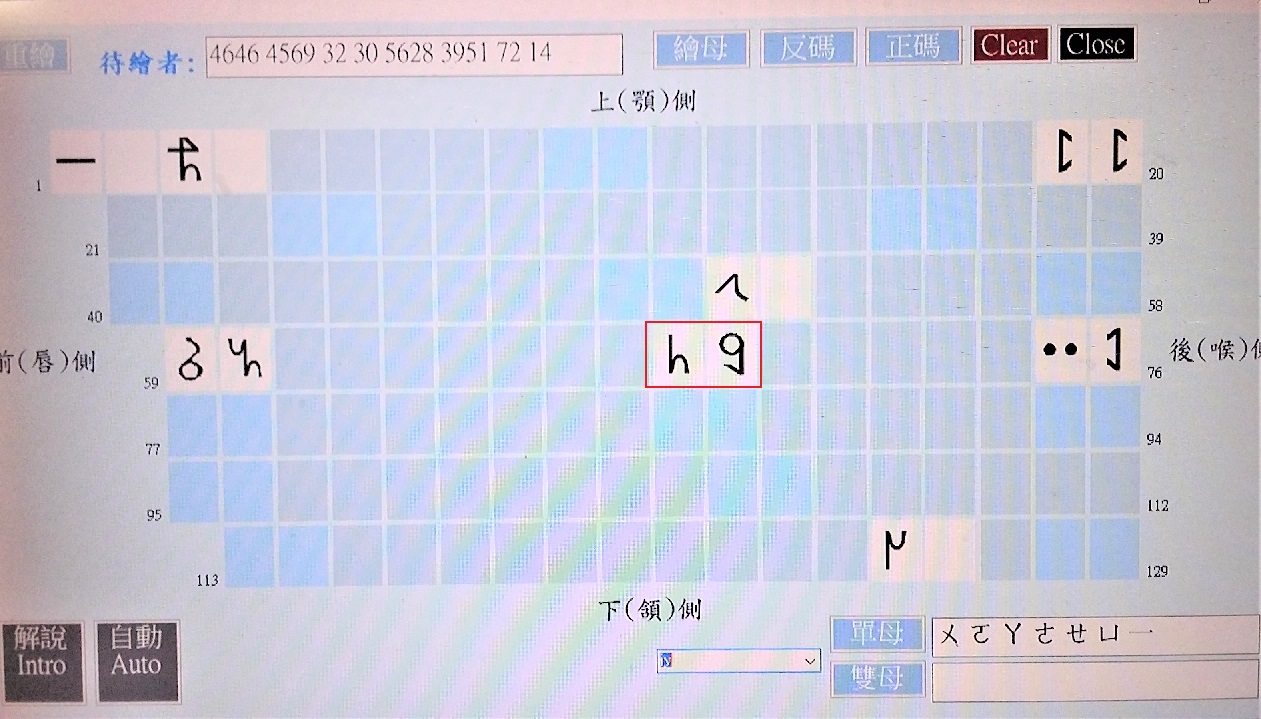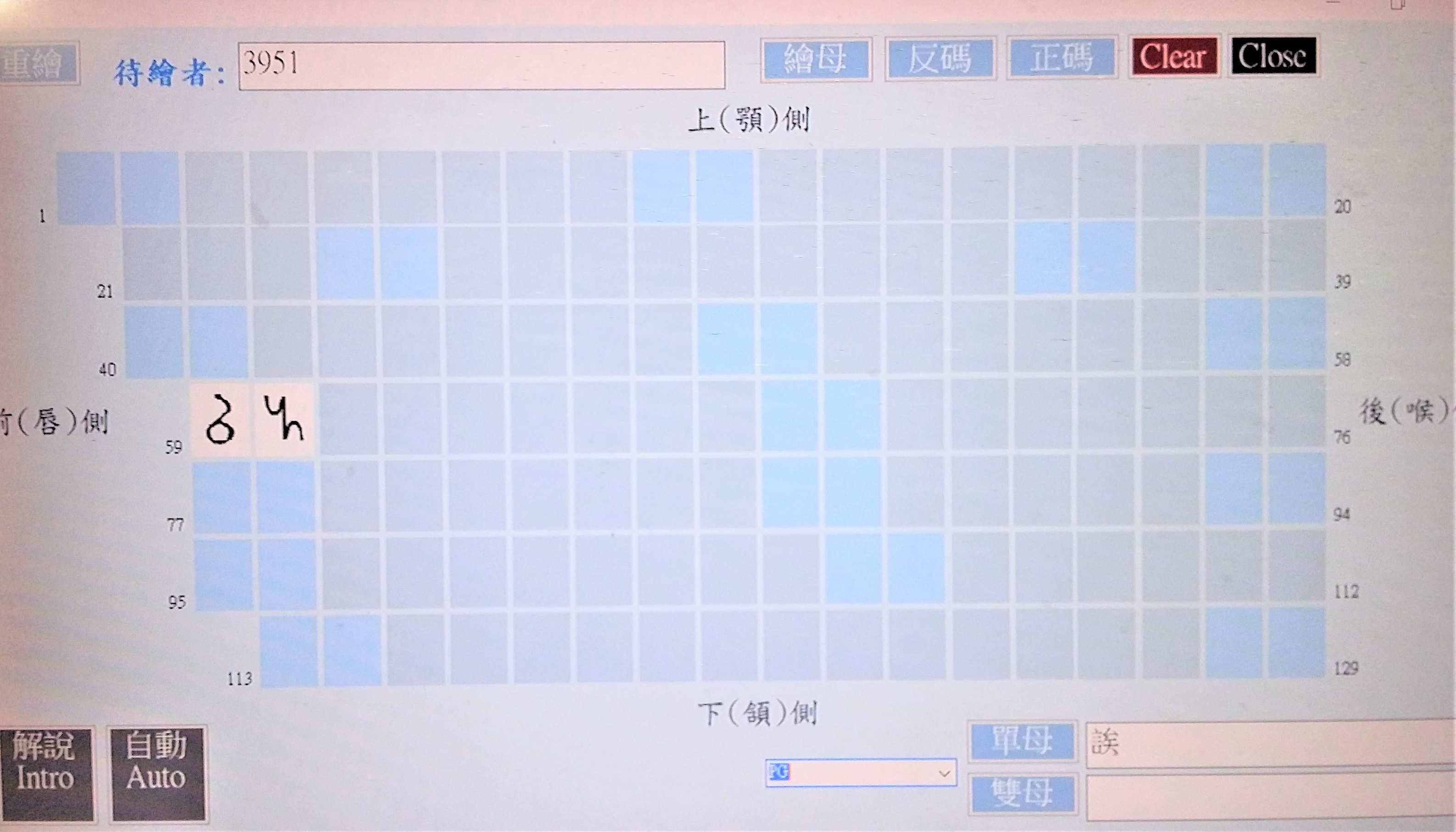 使用者甚至可以先用打字練習的 主體介面點出LMB碼,再直接點選網格鈕 去 開始直接繪出相對的 母音發音位置。