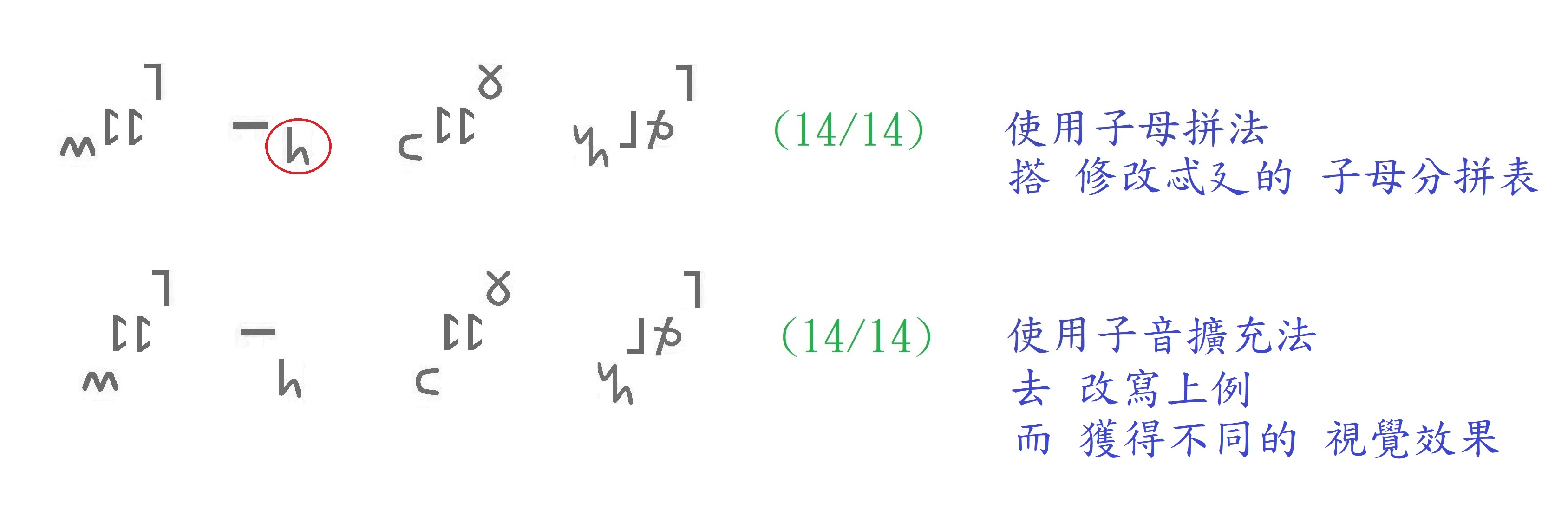 且 14/14也優於羅馬拼音版的 14/16。