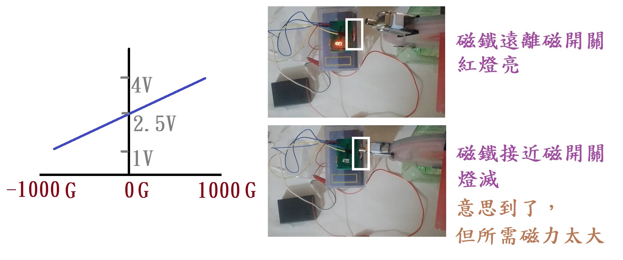 咱開始不是用實驗二做了一個電磁鐵?這表示咱可以繞個小線圈 去 貼近磁開關 去廴 造出個偏置磁場,讓IC一開始就有個-500G 或 -600G的 偏置。