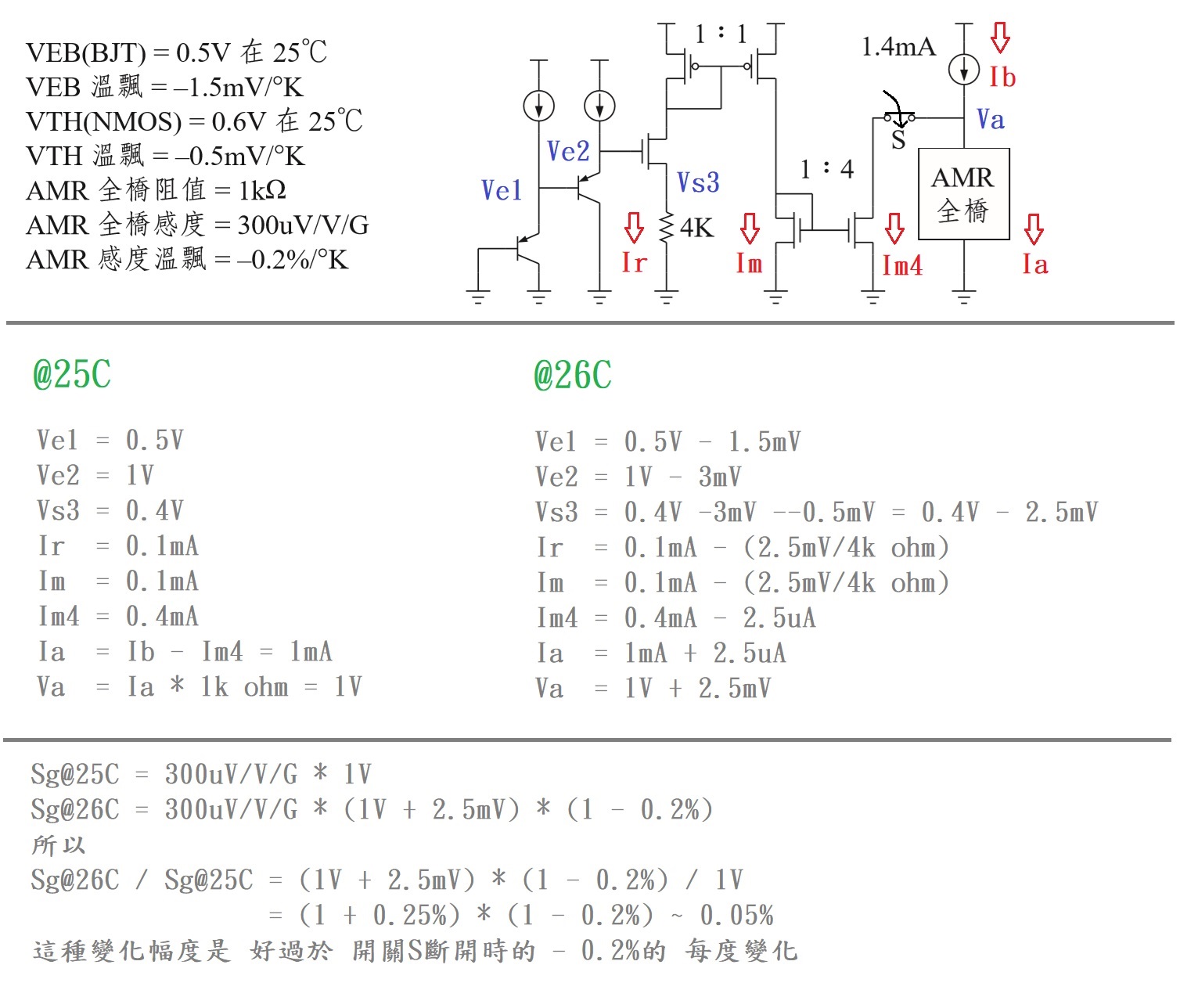 本題題目並未說清何謂 "AMR全橋的 溫飄",但從以上解答可知,咱用磁感度變化 於 該全橋 去 衡量。