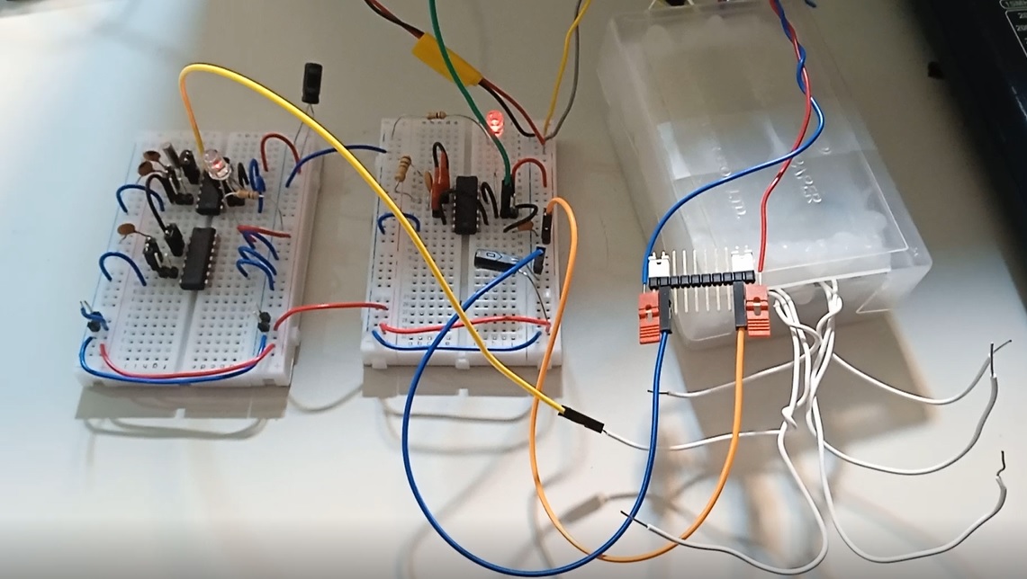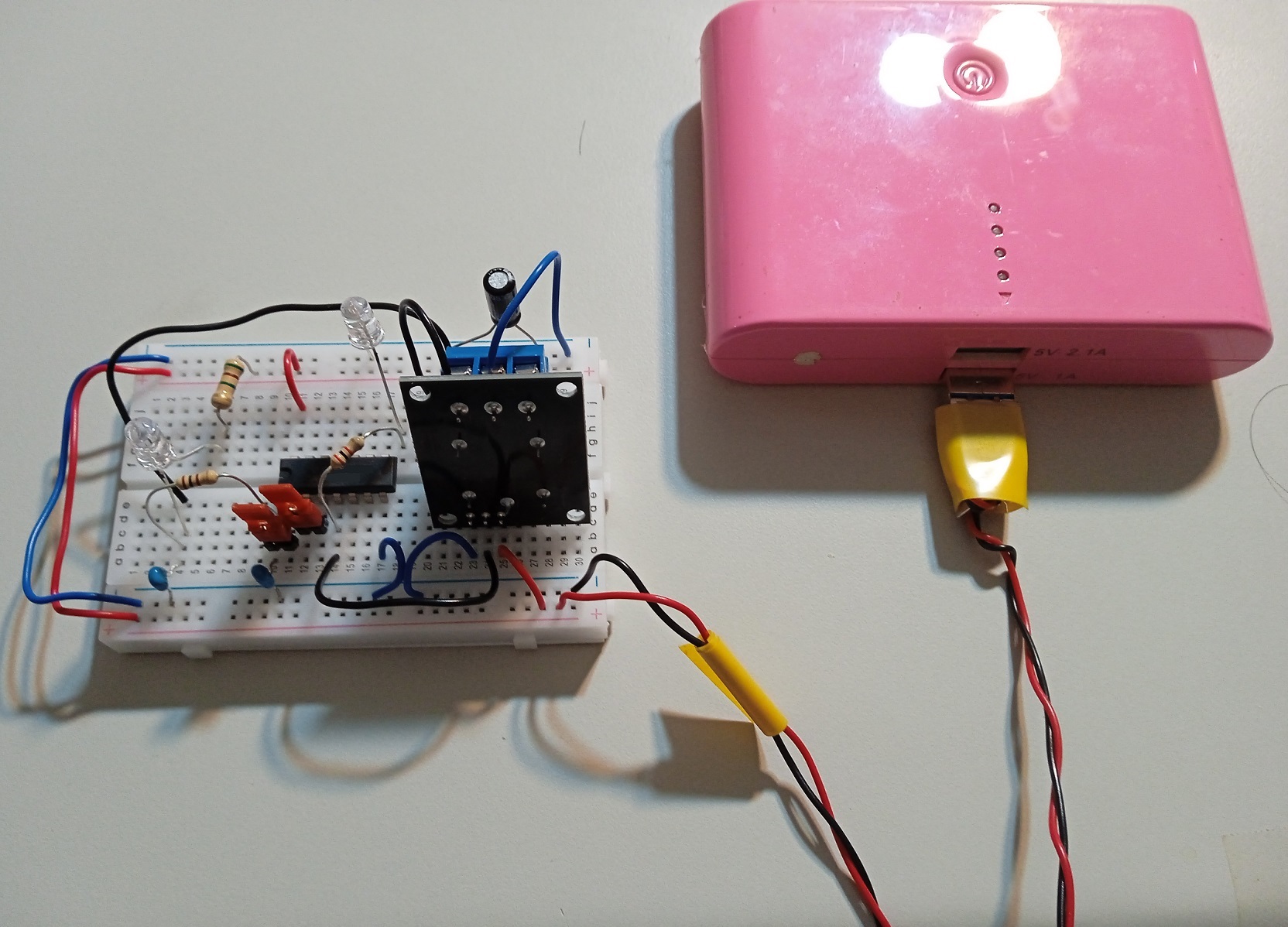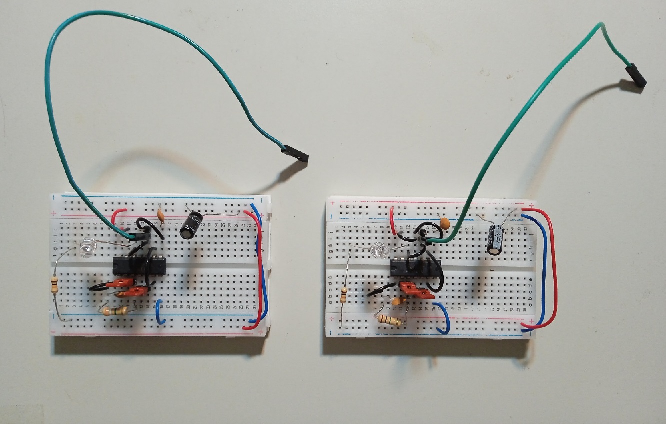 上圖的鬆弛振盪有頻率被設在約1Hz左右。其中最左側的LED可被短路,右側的LED才是檢測用的LED。