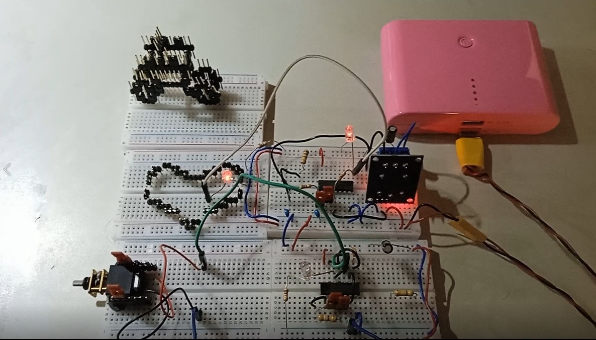 因此,咱實作了一個版本,用繼電器取代了該圖的MOS、擇反閘兩顆其有電壓遲滯特性者、且額外增添了幾個抗噪和檢測元件。