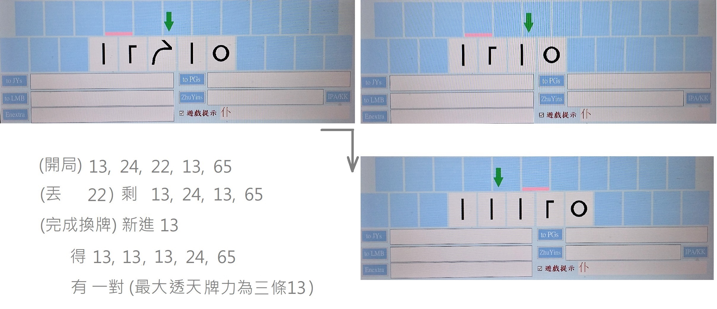 小明開局就有一個對子,所以他想保留那個對子 且 用換部分牌料 去 得到更多對子。