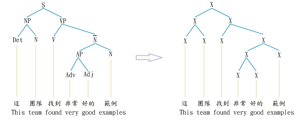 為了讓讀者繞過繁瑣的句法學知識,或者說常識,並且能掌握減化的精隨,筆者用符號X去代表所有詞組予分析。